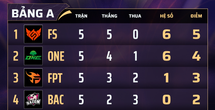 Với kết quả này, sẽ có 2 đại diện AOG là FPT và 1S tiến tới Tứ kết và 2 đại diện là SPN và SGP sẽ phải dừng chân tại vòng bảng ở mùa giải lần này.